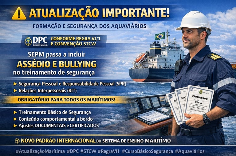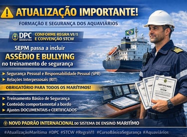 A Diretoria de Portos e Costas (DPC) comunicou oficialmente à comunidade marítima uma atualização relevante no Sistema de Ensino Profissional Marítimo (SEPM), com impacto direto na Regra VI/1 da Convenção STCW.